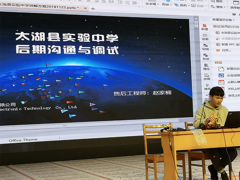 售后工程師講解大湖縣實驗中學的調試過程